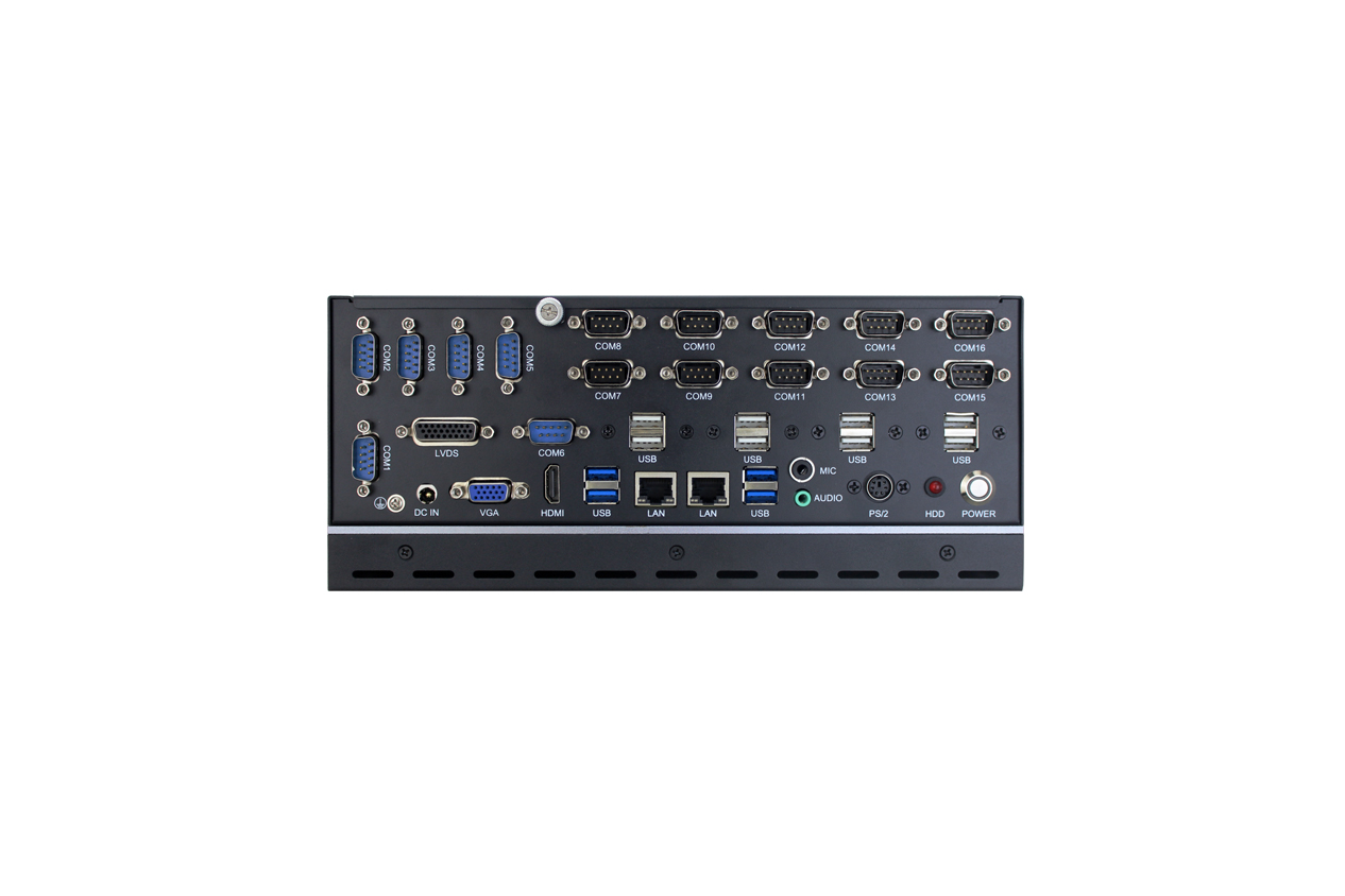 ·4*USB3.0、8*USB2.0、16*RS232、1*VGA、1*HDMI、1*LVDS、2*Intel?I210-AT